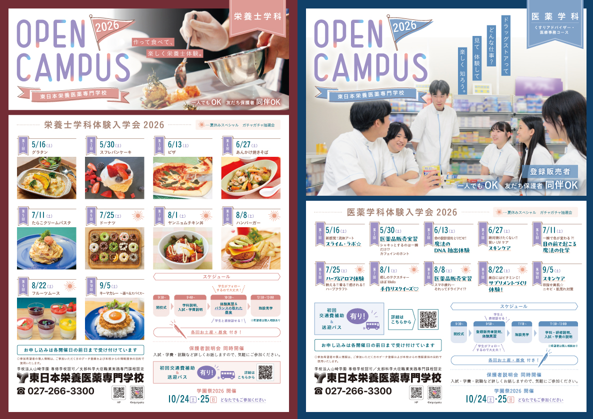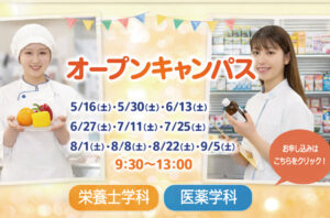 栄養士学科・医薬学科とも毎回体験メニューを変えて開催いたします。