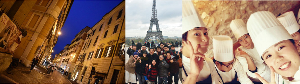 一流の食文化、最高峰の料理にふれる。希望者を対象にヨーロッパを巡り、味わう海外研修。最高峰の料理を自分の目で見て、味わって、体得してほしい。そんな考えから、毎年秋に実施されるヨーロッパ研修。フランス・イタリアを中心に約2週間、豊かな食文化を育んだヨーロッパの国々の歴史と風土を肌で感じます。