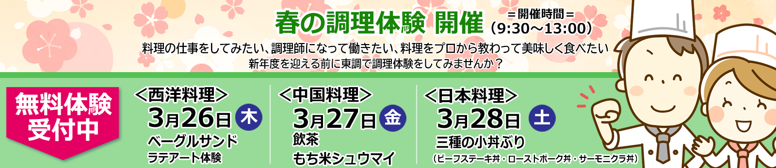 ~新学期を迎える前に東日本調理師専門学校で調理体験して楽しみませんか?~